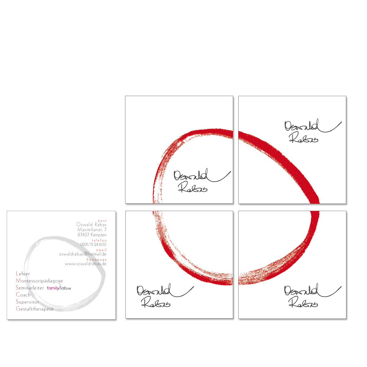 Visitenkarte 4verschiedene Vorderseiten – eine Rückseite, 60x60mm – print