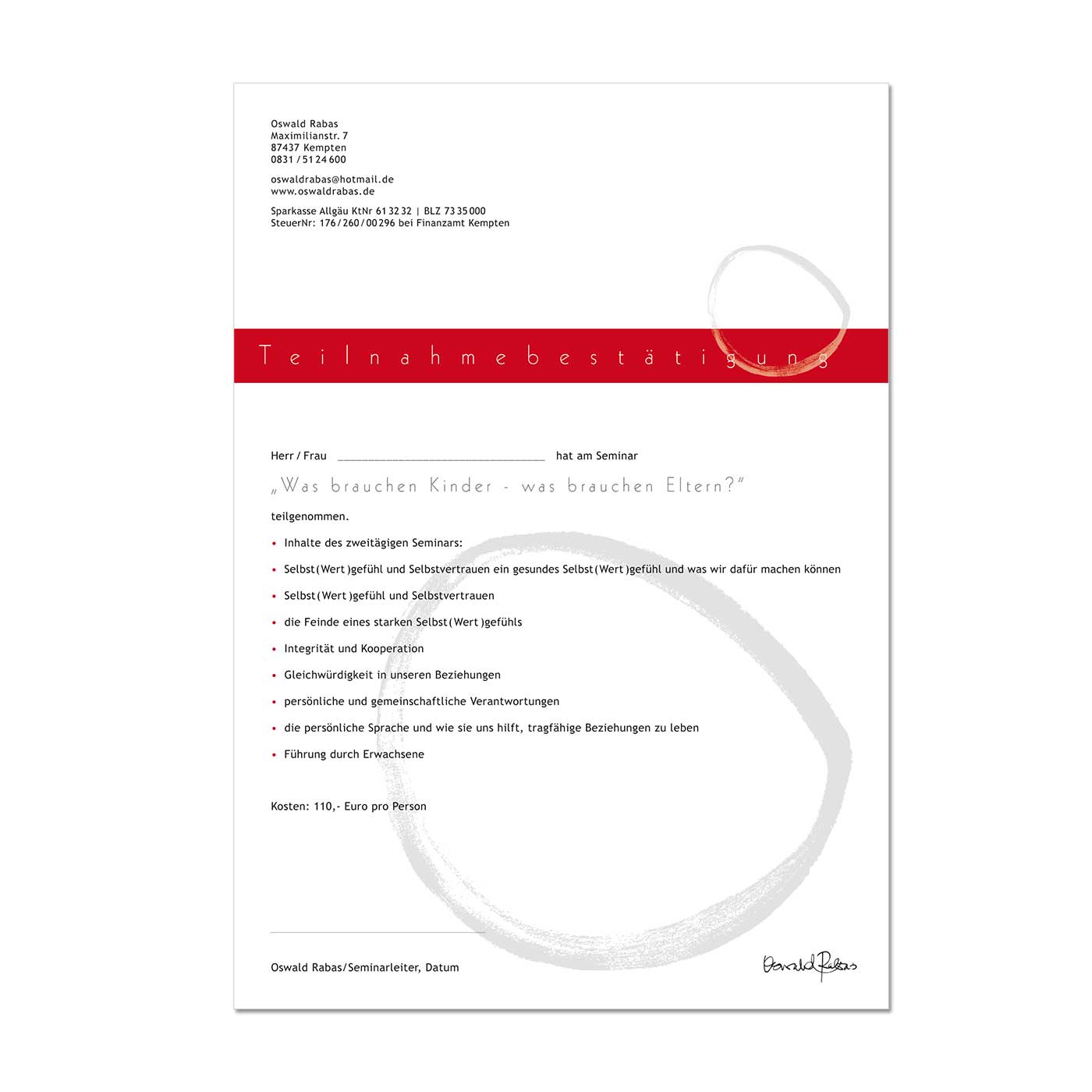 Teilnahmebestätigung, DIN A4 – print/online